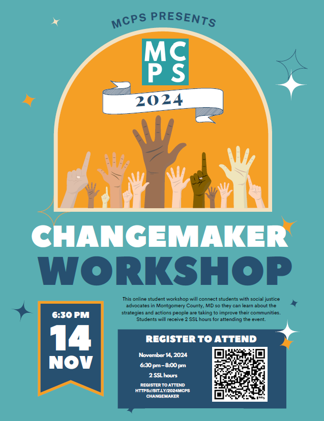 November 14, 6:30PM-8PM: https://bit.ly/2024MCPSChangemaker